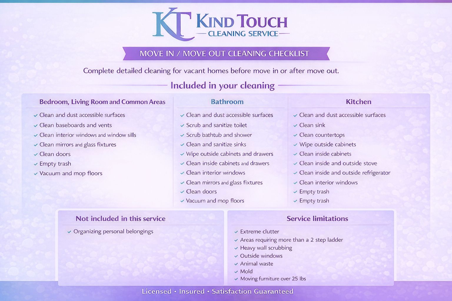 Kind Touch Cleaning Services proudly serves the tri state area of PA, NJ, and DE with professional, reliable, and detail focused residential cleaning